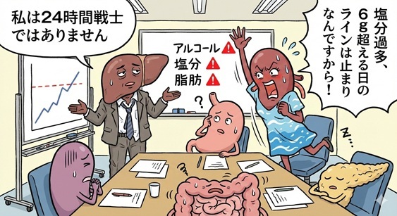 「塩分過多、6g超える日のラインは止まりそうなんですから!」