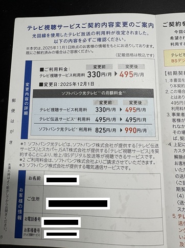 テレビ利用料 改定のお知らせ