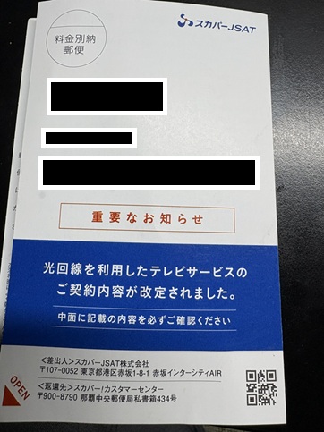 スカパー利用料20%値上げ?一通のはがきから、固定費と年金生活をチョット考えてみた
