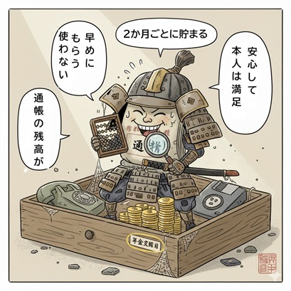 年金の支給で、2か月ごとに通帳の残高が増えているから。
