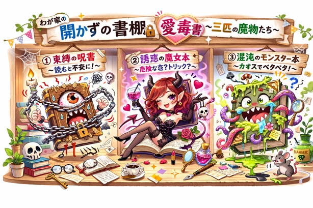 今日はその舞台裏……わが家の**「開かずの書棚、愛毒書」**のお話です。
