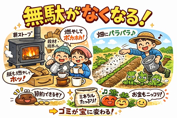 灰にはカリウムやカルシウムが含まれて、