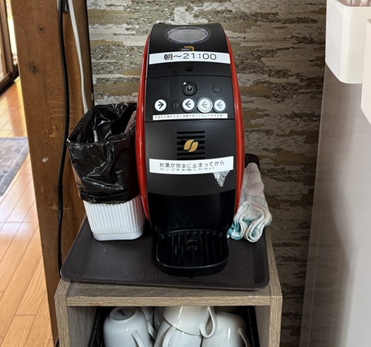 「ダメダメ、ポット設置してないから。書いてあるでしょう、“朝”って。7時からだから」