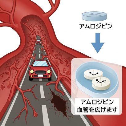 ここに登場するのが アムロジピン=緊急拡幅工事隊。