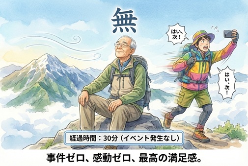 山の上で何も起きないのに満足